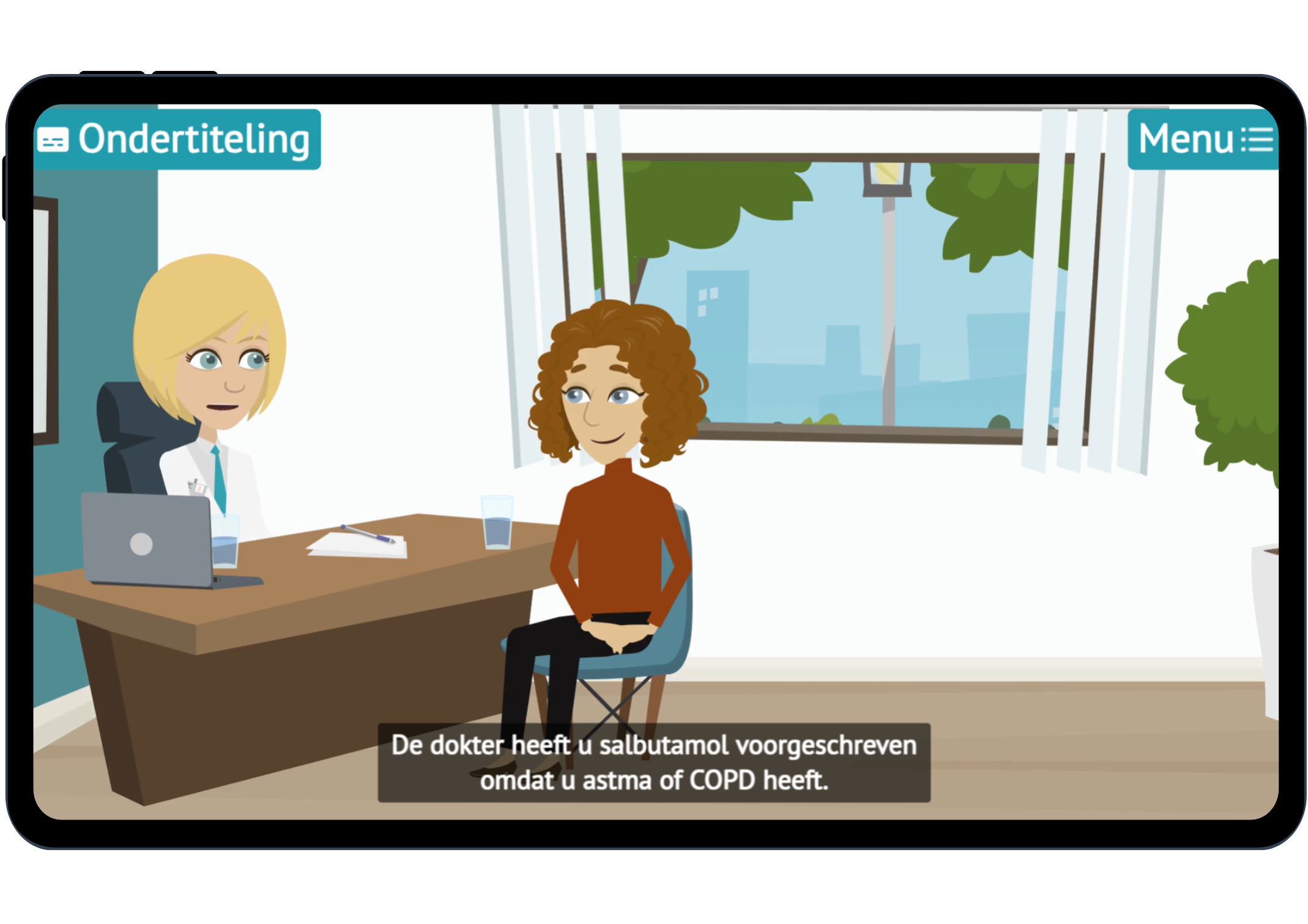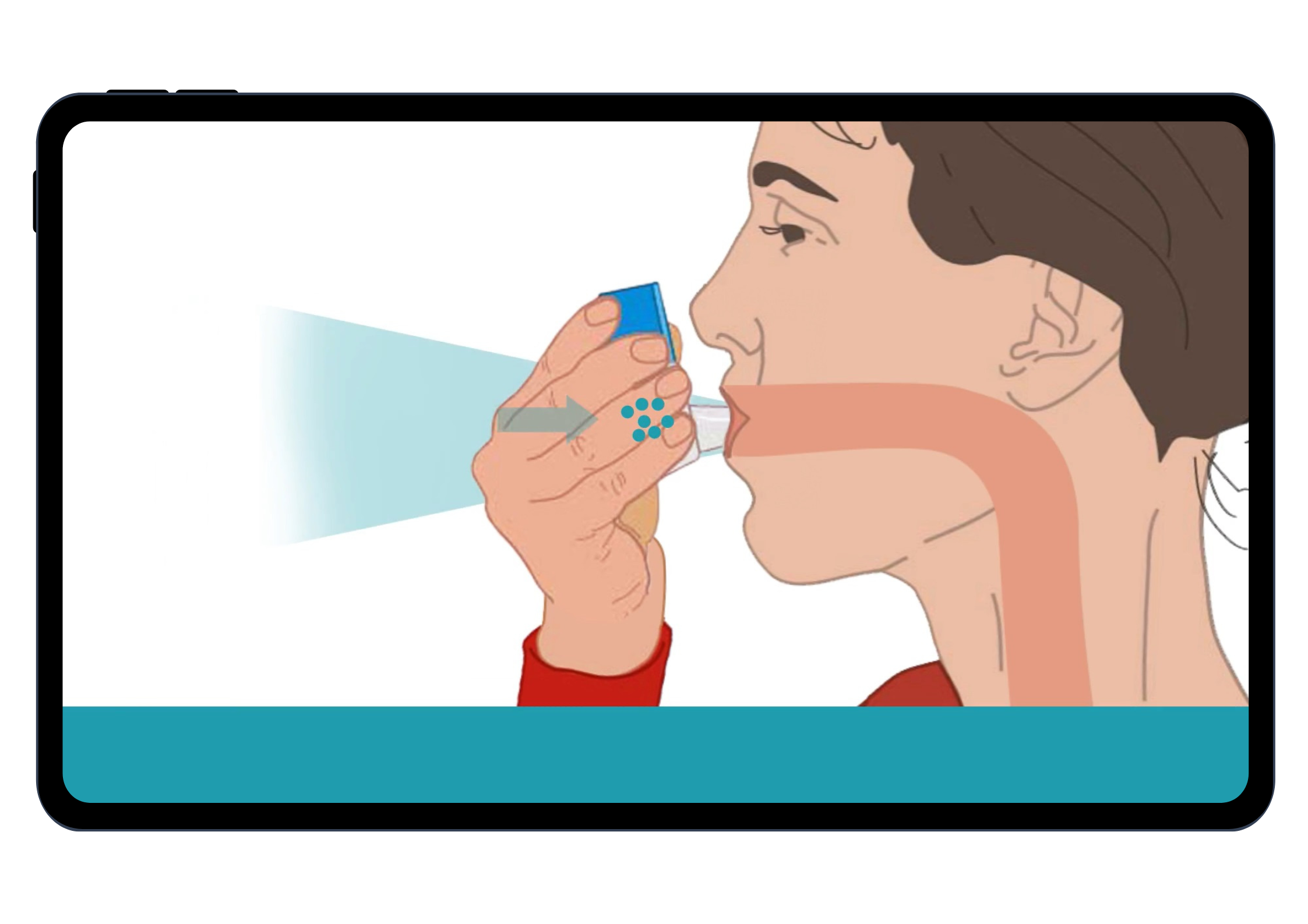 Een animatievideo die stap voor stap uitlegt hoe een bepaalde toedieningsvorm of toedieningssysteem (zoals een inhalator of insulinepen) moet worden gebruikt.
